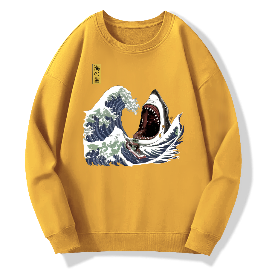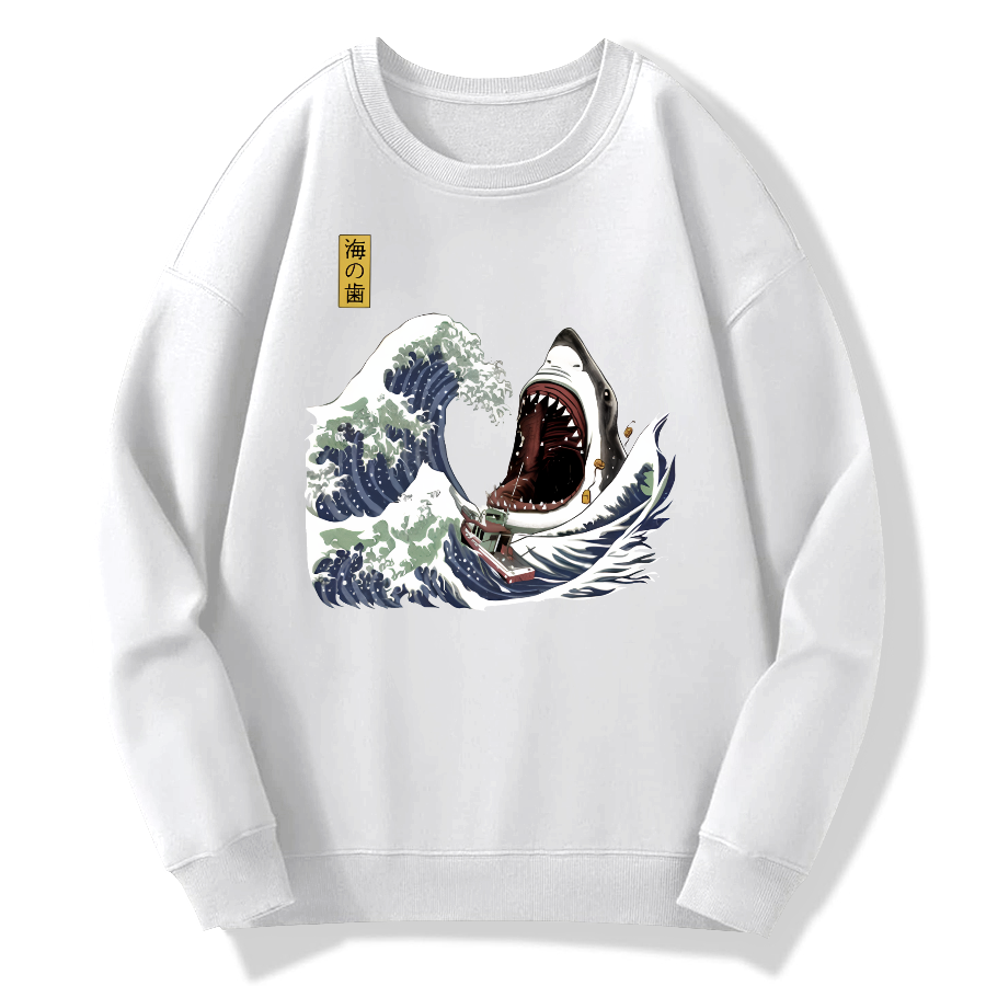 Japanese Great White Shark Cotton Pullover Sweatshirt