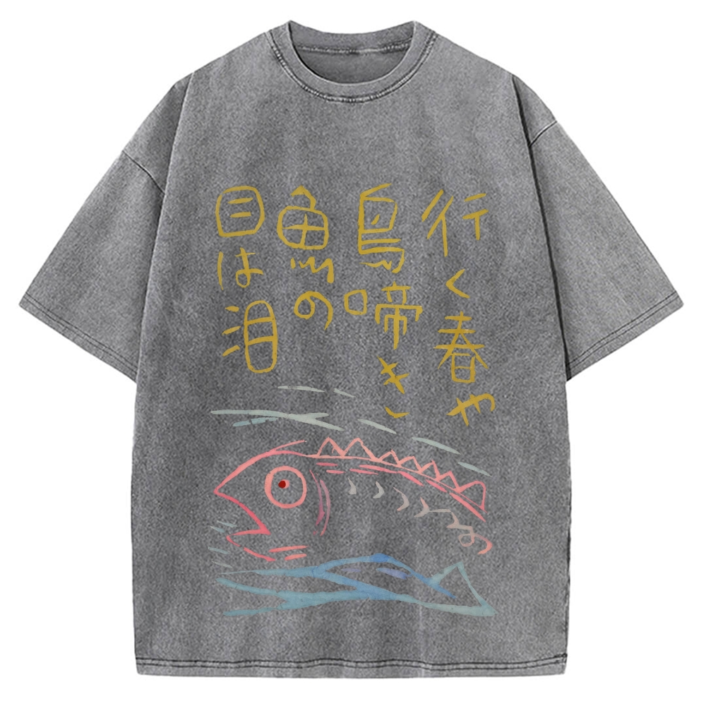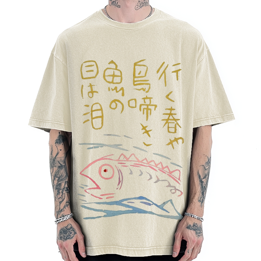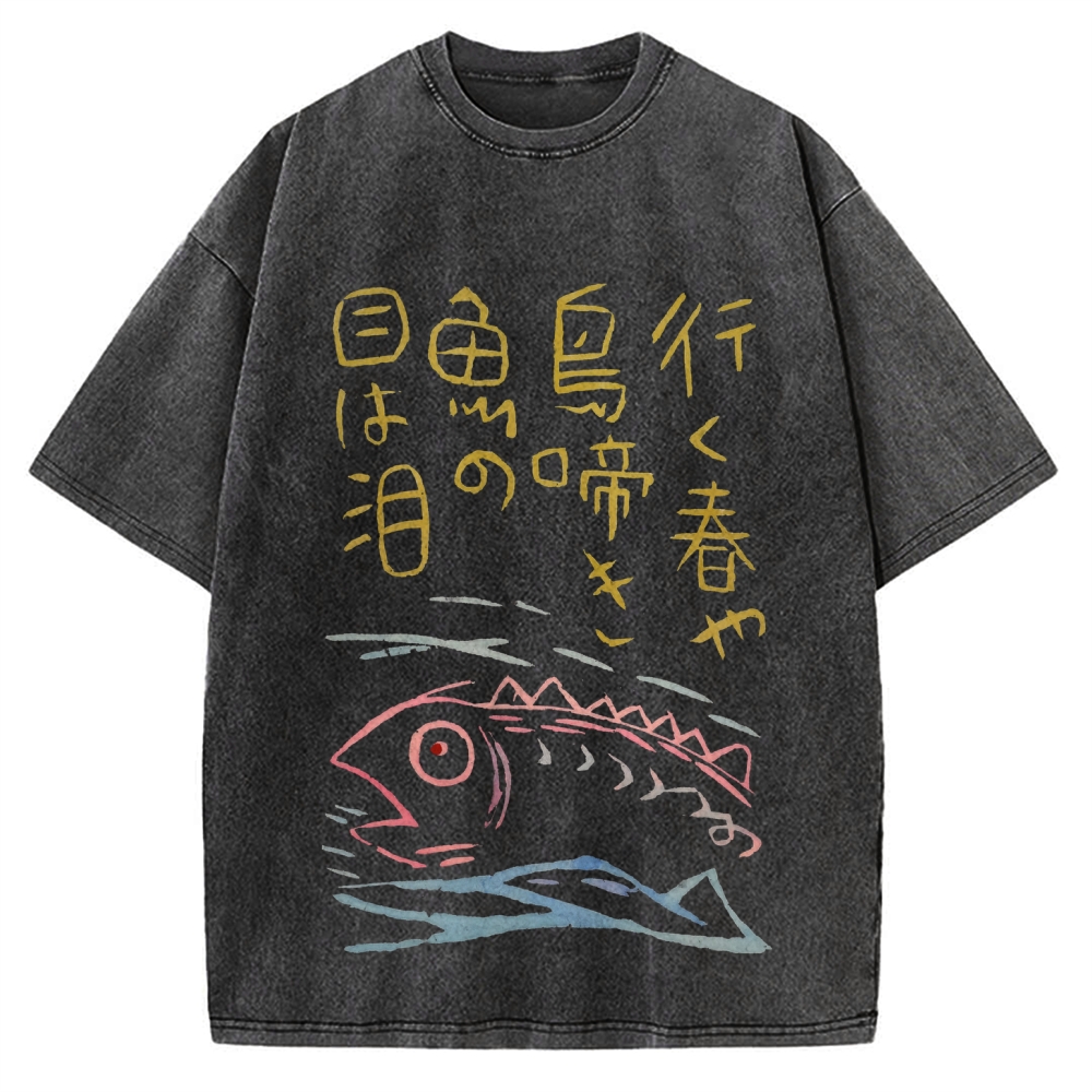 Japanese Kanji Fish Painting Vintage Washed T-shirt