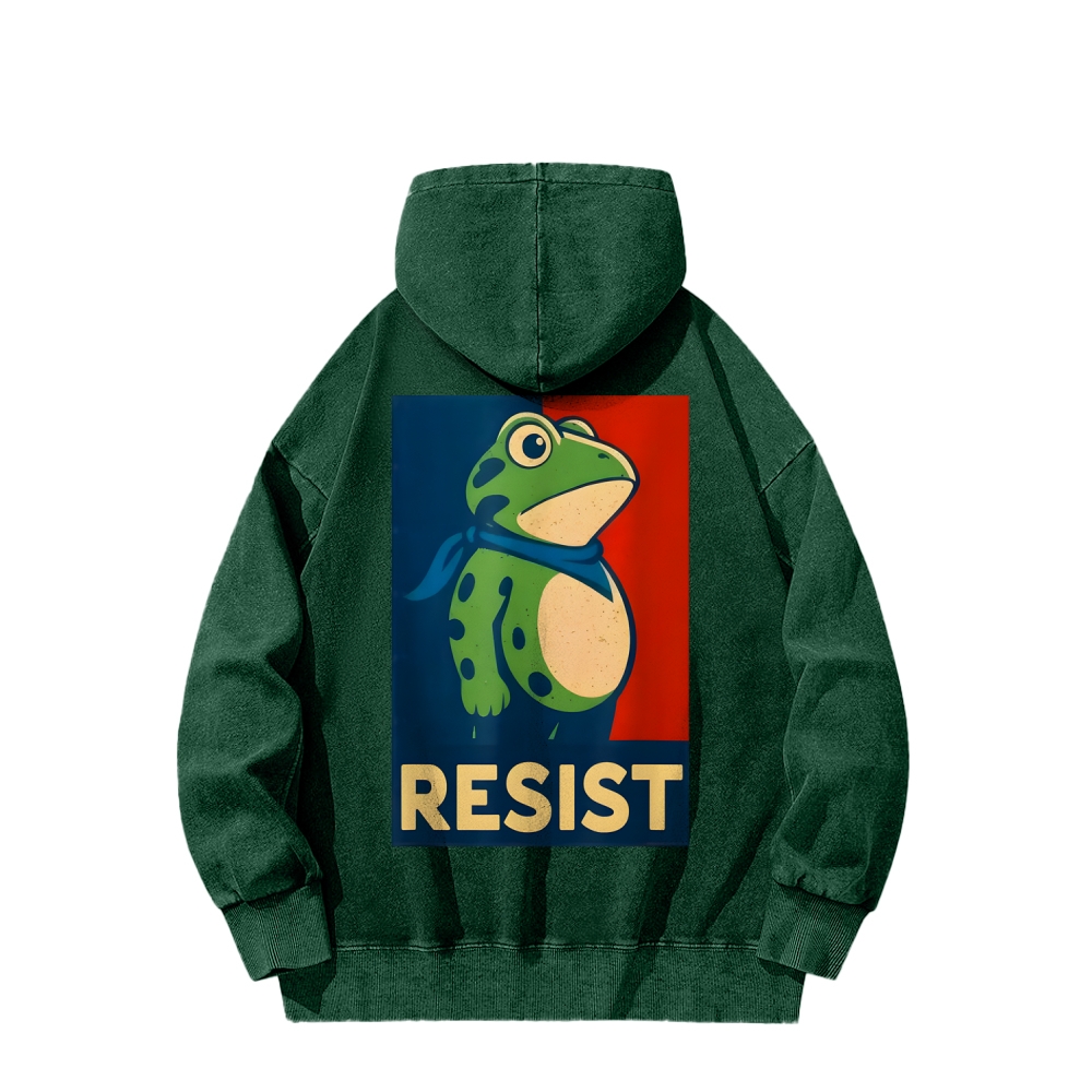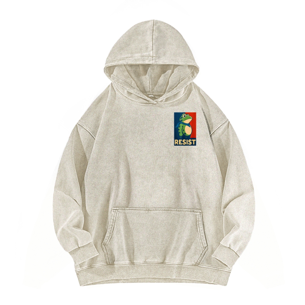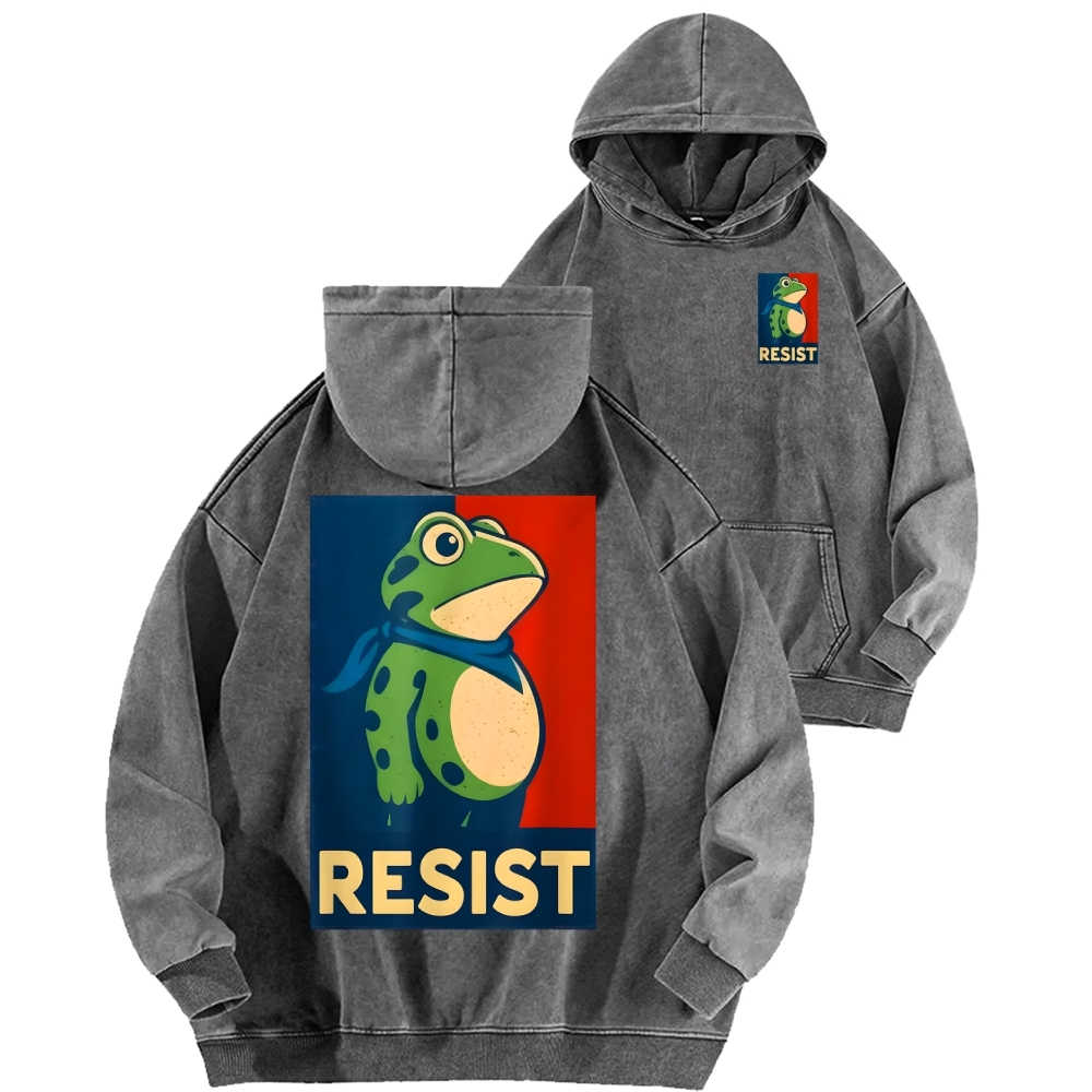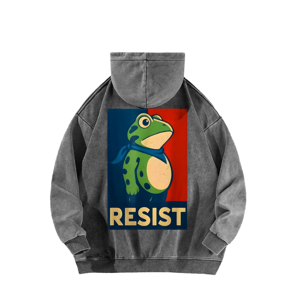 Resist Frog Front And Back Printing Vintage Washed Hoodie