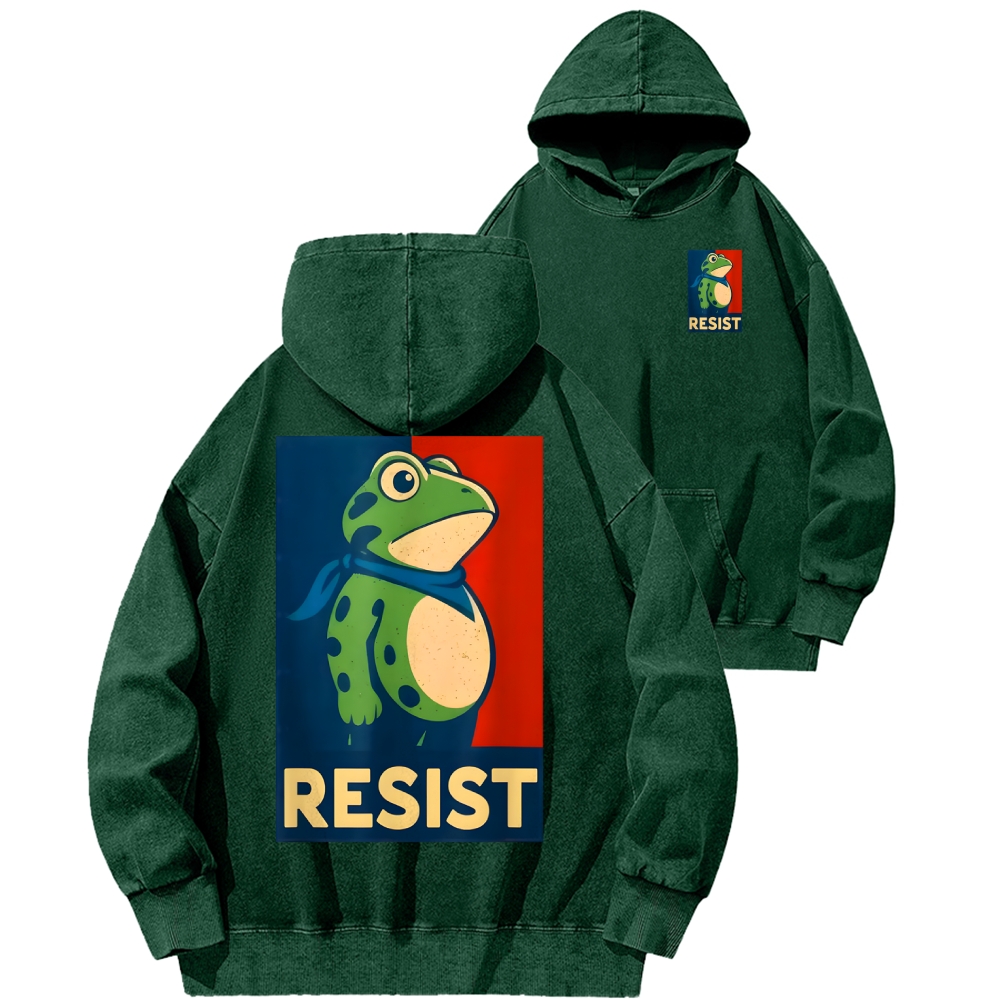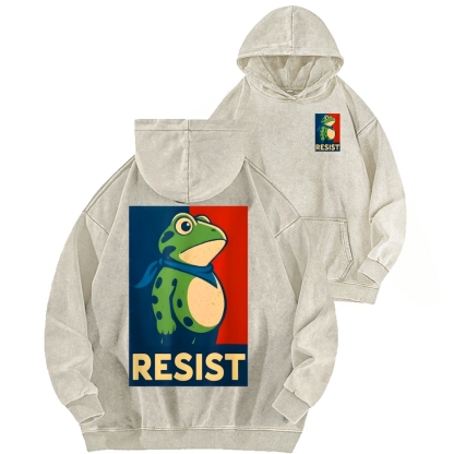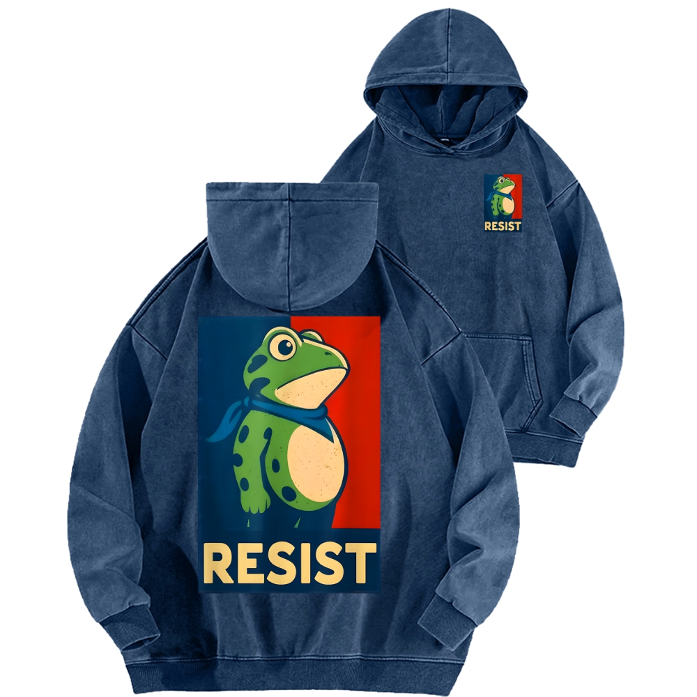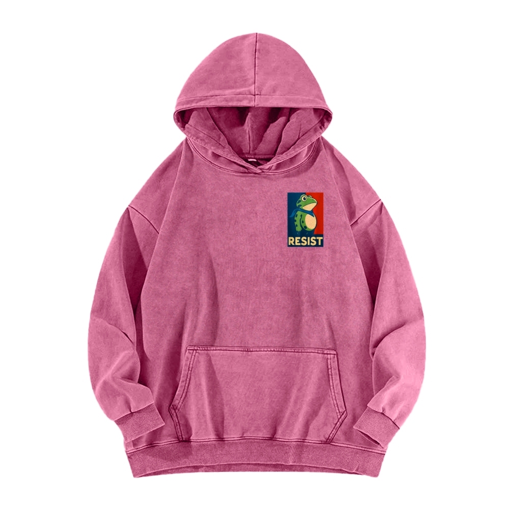 Resist Frog Front And Back Printing Vintage Washed Hoodie