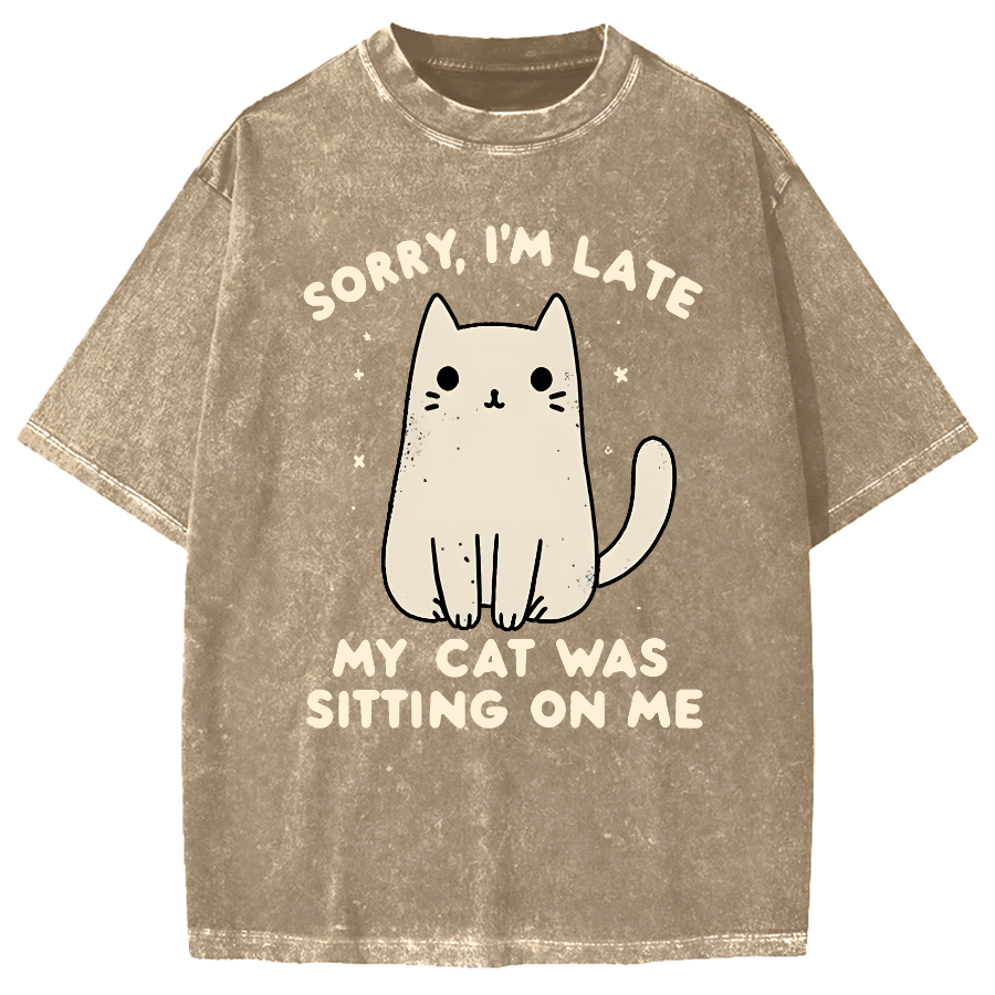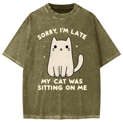 Sorry I'm Late My Cat Was Sitting On Me Vintage Washed T-shirt