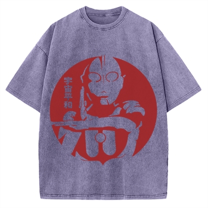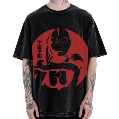Space Peace Fighter Japanese Super Man Vintage Washed T-shirt
