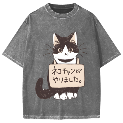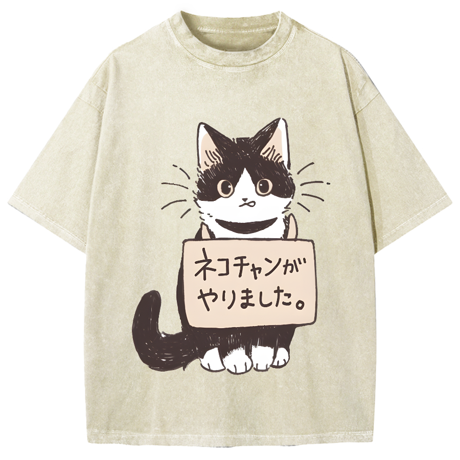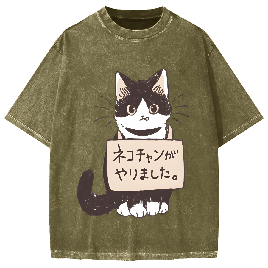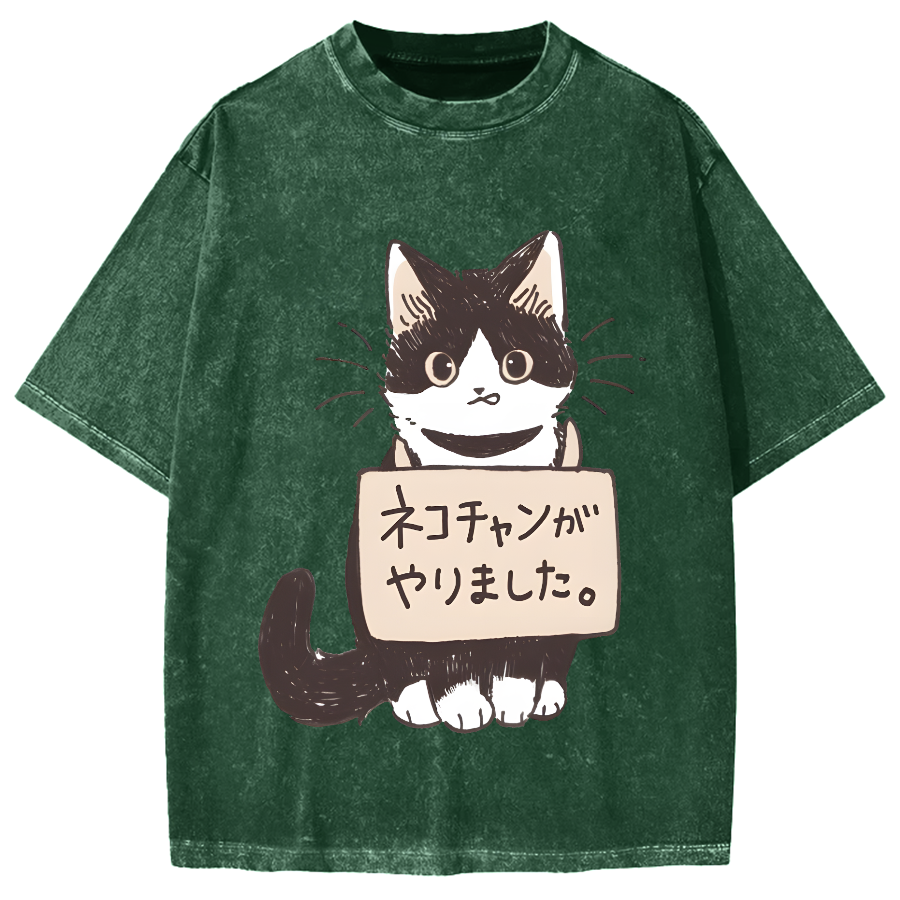 The cat did it Japanese Vintage Washed T-shirt