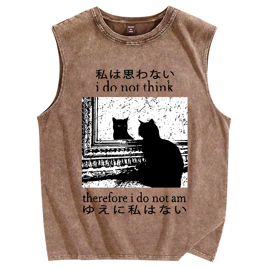 Thinking Cat Vintage Distressed Washed Tank Top