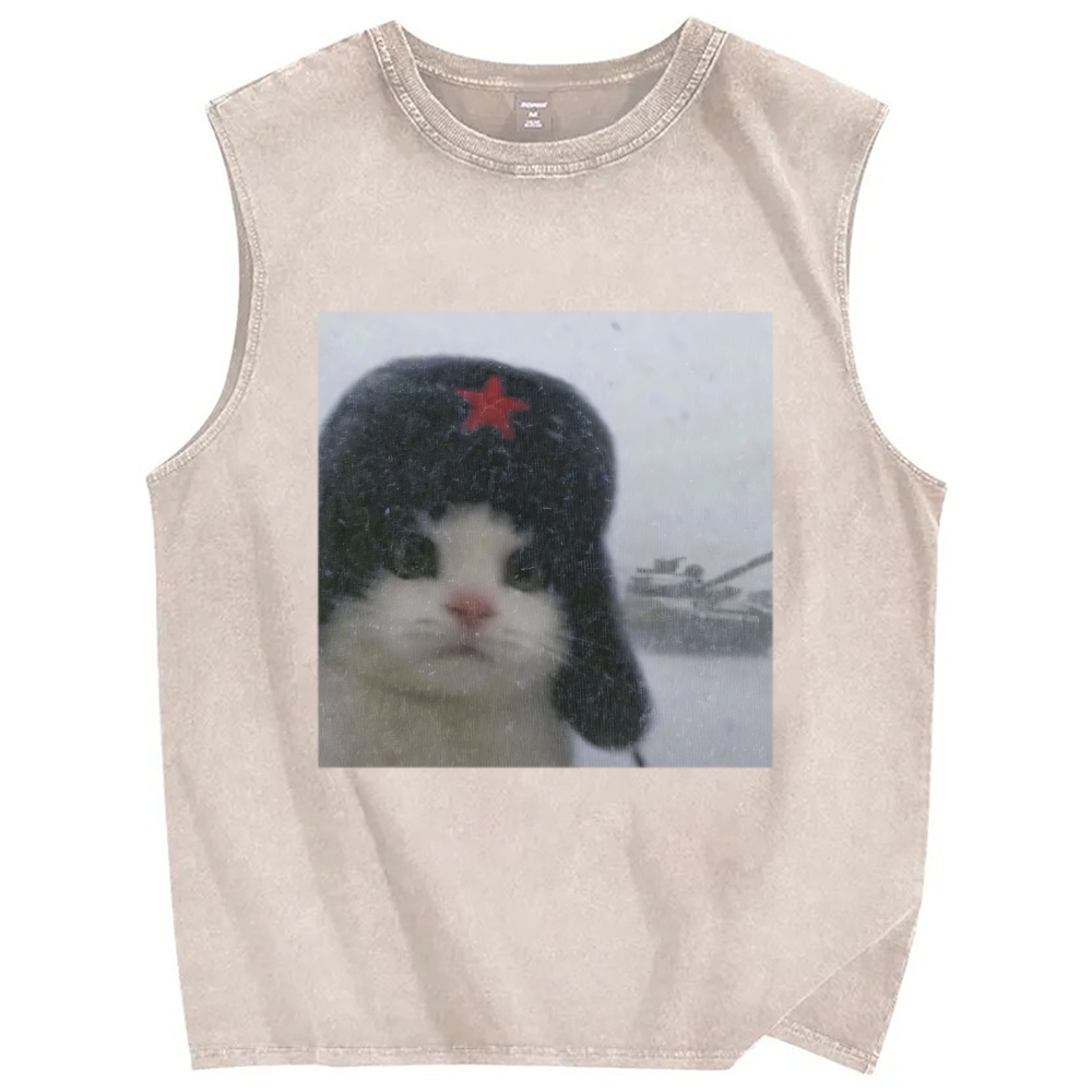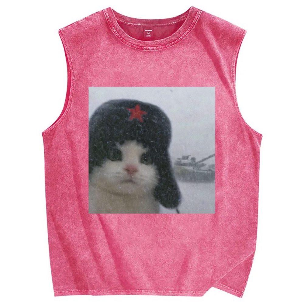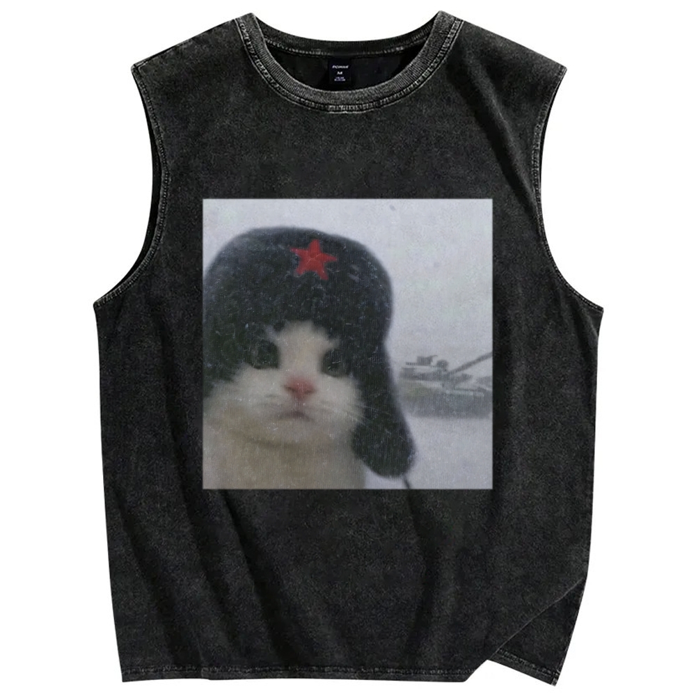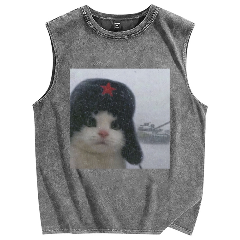 Wacky Cat Vintage Distressed Washed Tank Top