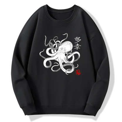 Japanese Octopus Cotton Pullover Sweatshirt