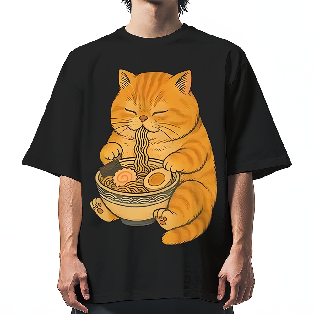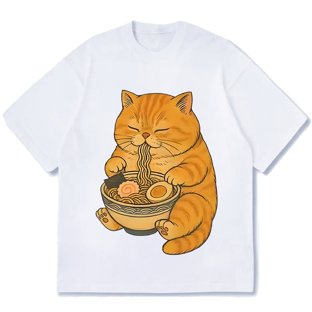 Orange Cat Eating Ramen Cotton casual T-shirt