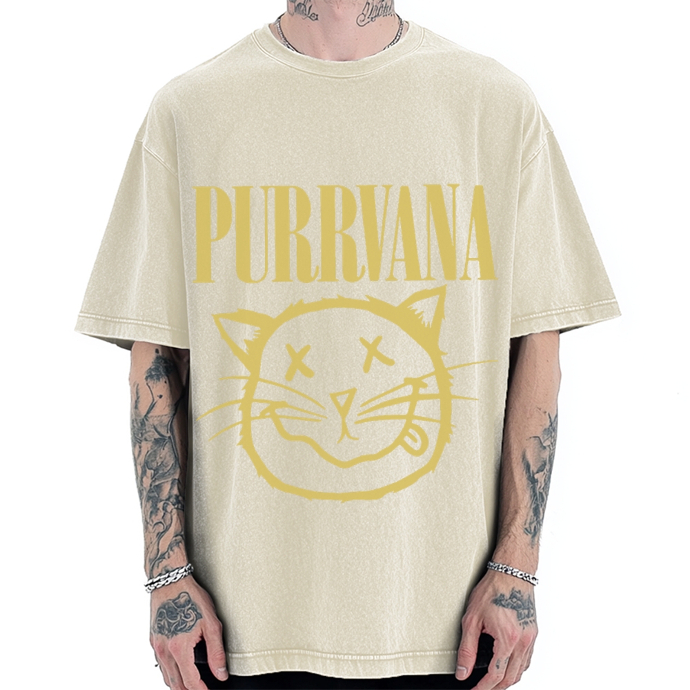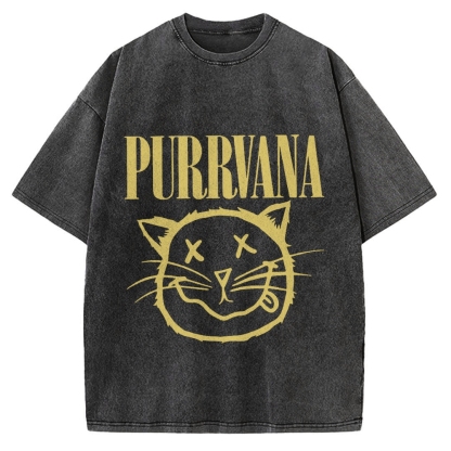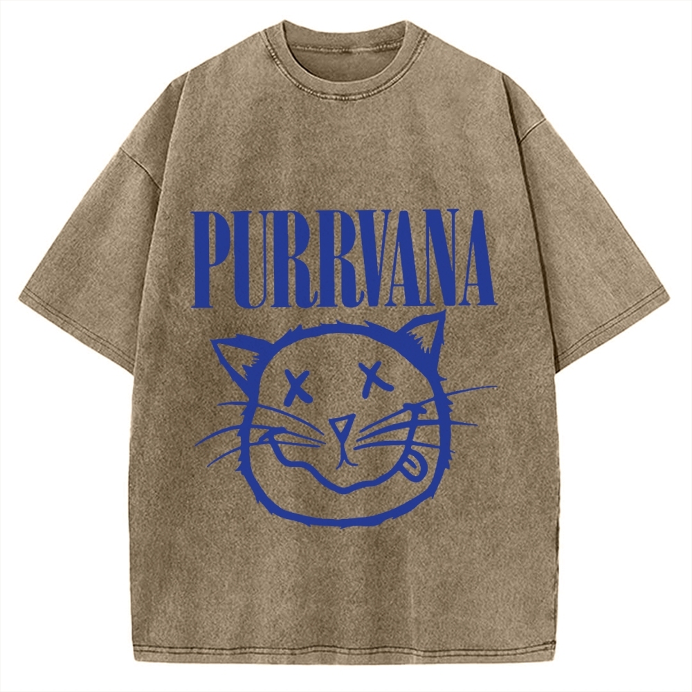 Purrvana Funny Cat Grunge Music Musician Vintage Washed T-shirt