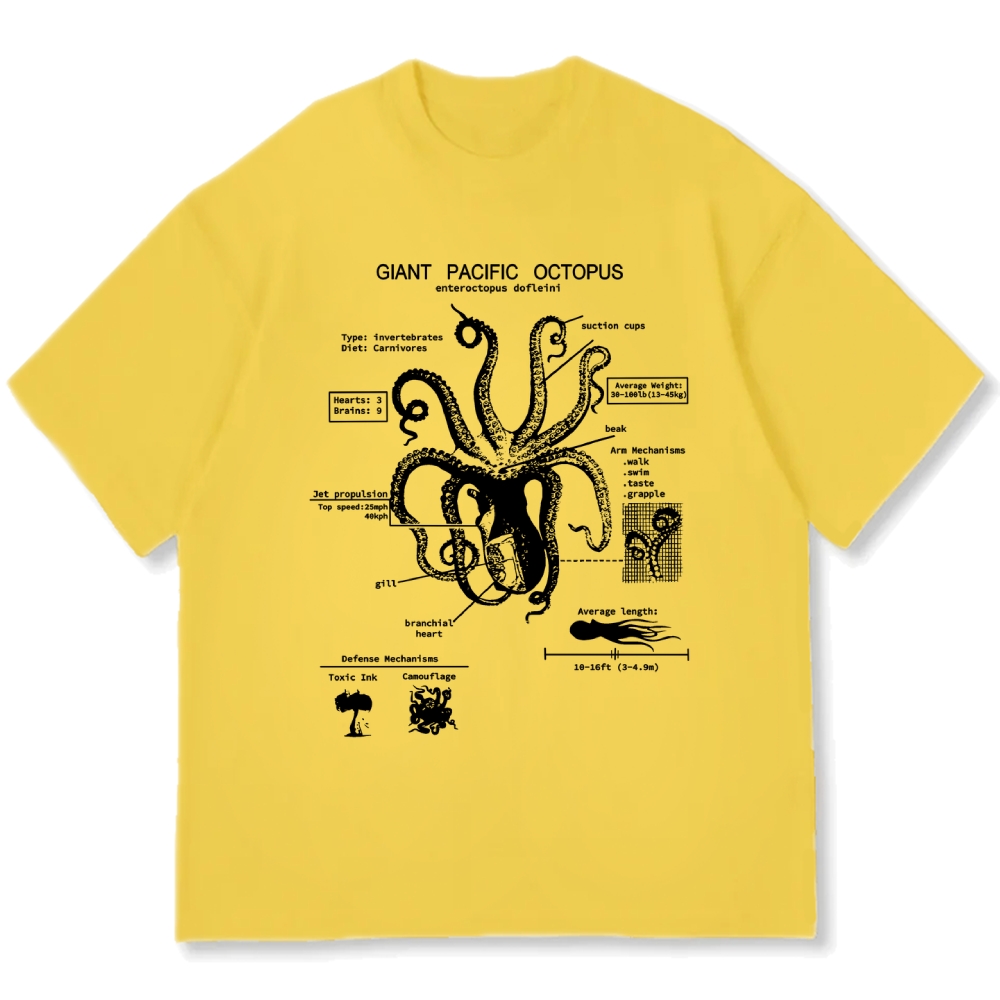 Retro Octopus Anatomy Diagram Cotton casual T-shirt