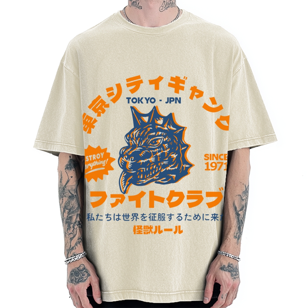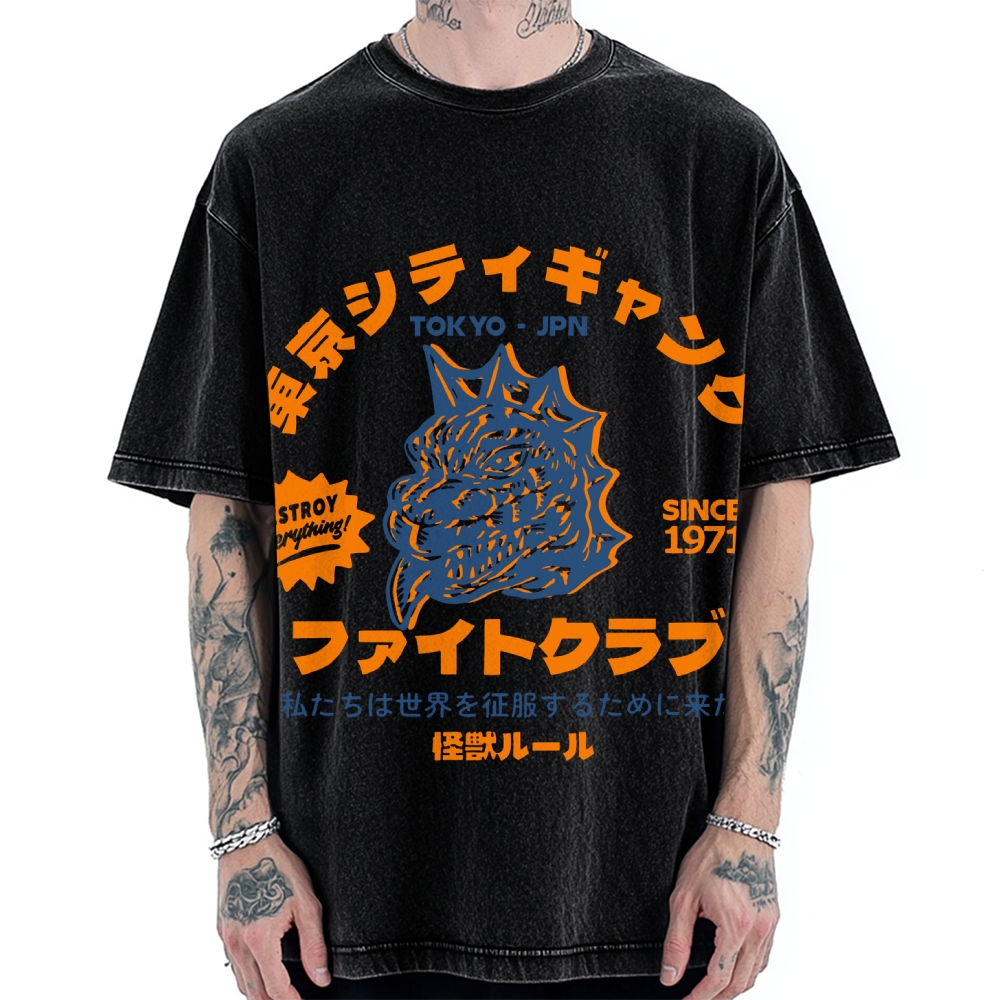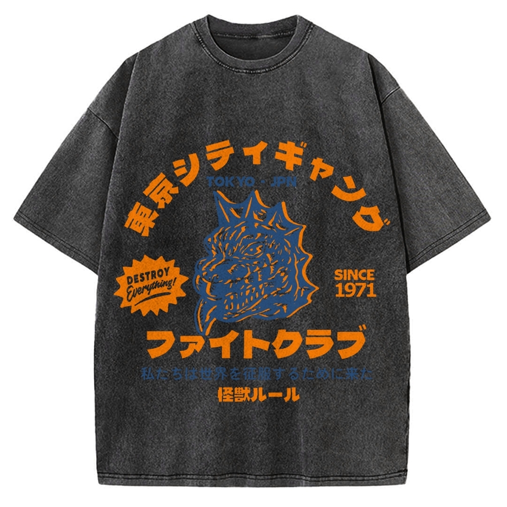 Yokai Monster Tokyo City Gang Fight Club Vintage Washed T-shirt